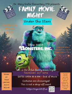10/30- PTA Movie Night @ 6:00 p.m.